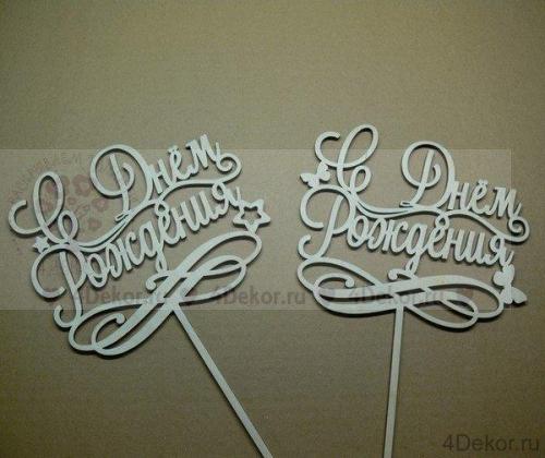 13 топперов "С днем рождения" с бабочками для женского пола, со звёздочками для мужского.