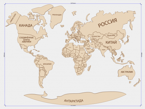 Карта мира с упрощёнными границами стран. (упрощение сделано для удешевления резки и внешнего вида).